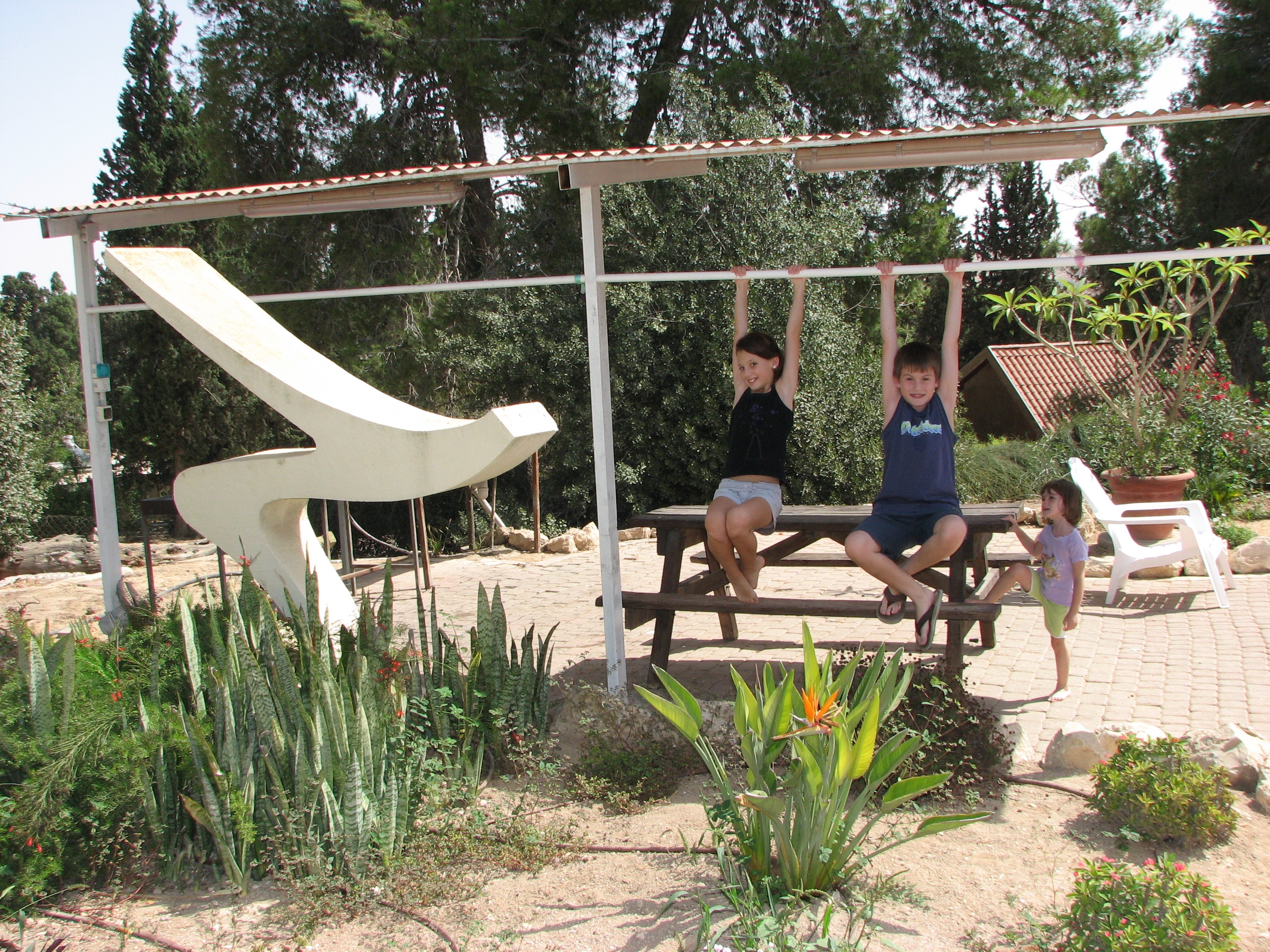 הנכדים ליד הפסל